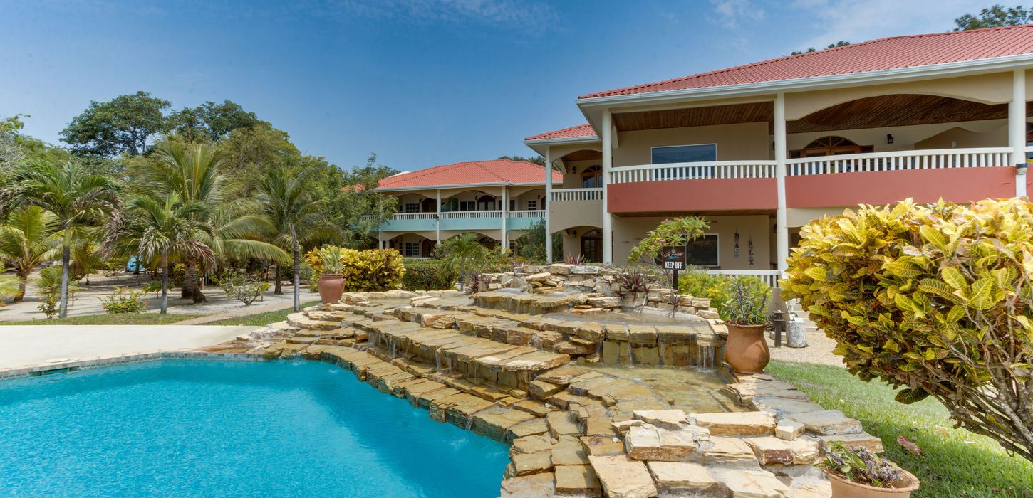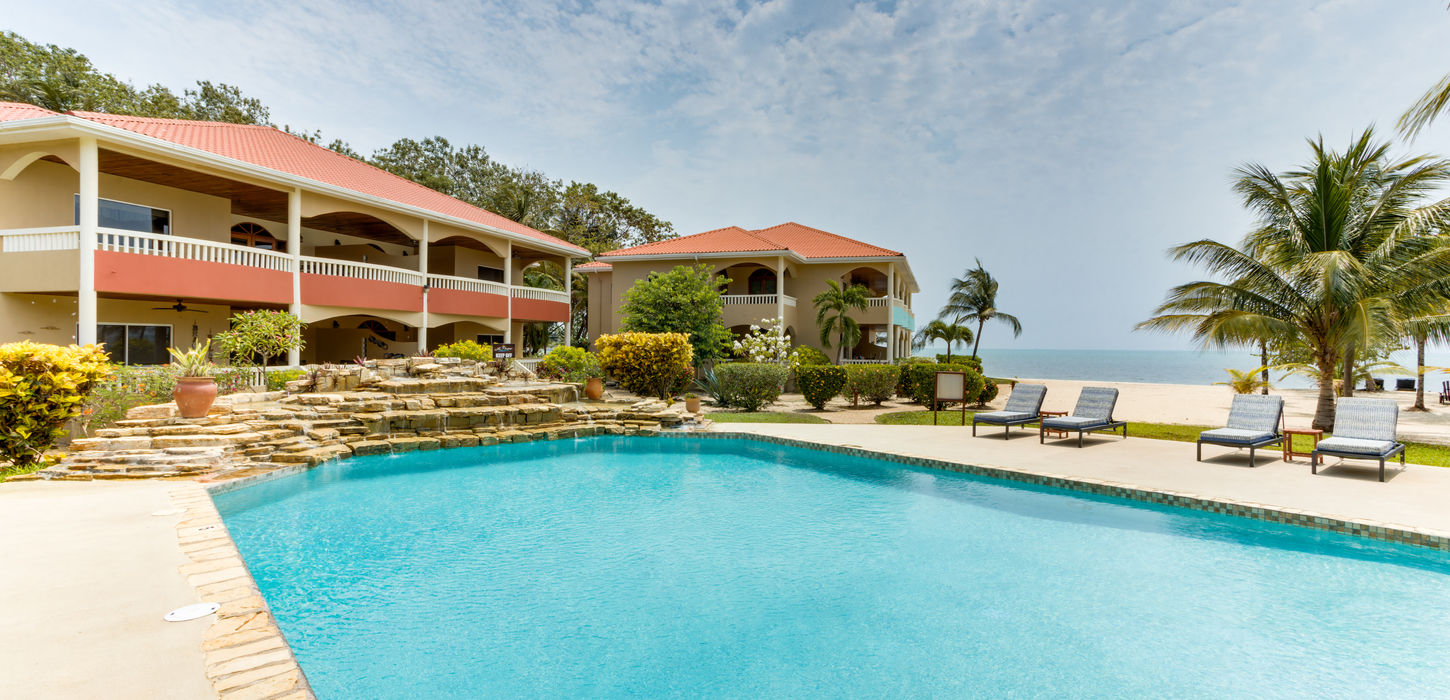 Los Porticos Villas is located on a private sandy beach with views of the crystal clear, turquoise Caribbean Sea for a perfect Belize vacation. We have a pool, partially shaded sitting area, pool & beach loungers and beach towels so you don’t need to bring your own. The property is gorgeously adorned with beautiful tropical plants and trees that house such various tropical animals such as birds, butterflies, iguanas and you may even see a few parrots fly by.