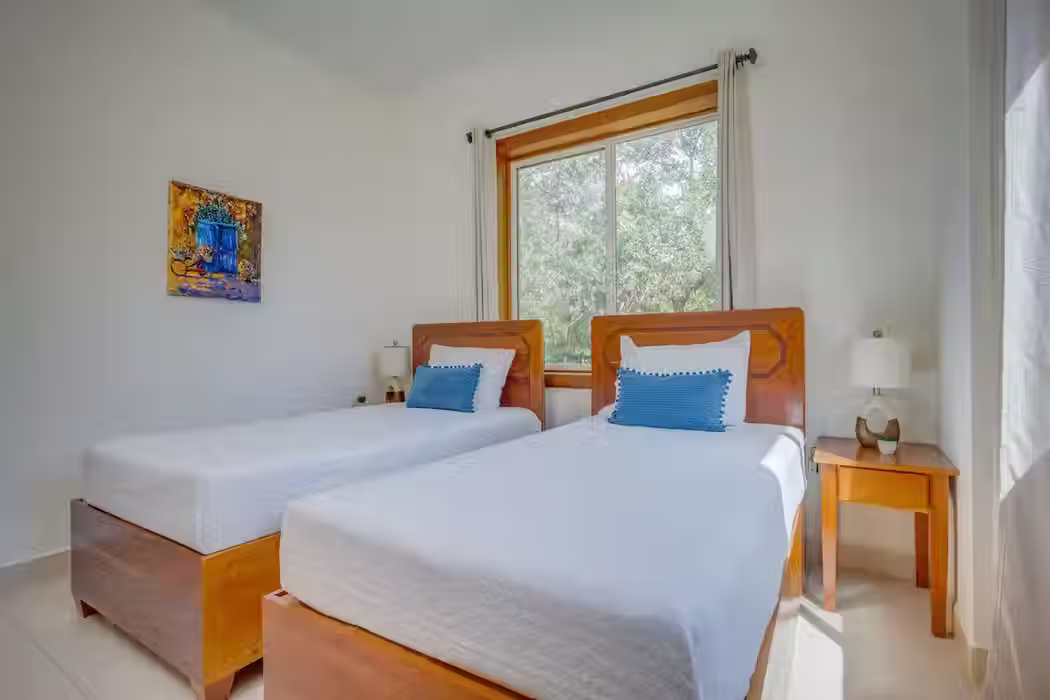 Discover your perfect tropical getaway at Villa 422, a spacious 3-bedroom, 2-bathroom condo on the second floor of Building 4. This unit is decorated with taste and comfort in mind, offering a cozy, modern atmosphere ideal for both families and couples. Convenient Location: The unit is perfectly positioned for easy access to the pool deck and beachfront. The large private balcony offers direct views of the pool and the Caribbean Sea—perfect for relaxing after a day of sun. The interior features comfortable furnishings, a Smart TV, and complimentary high-speed Wi-Fi. The kitchen includes dark granite counters and matte steel appliances and is fully equipped for easy, self-catering vacation meals. Keep your packing light with a convenient in-unit washer/dryer. Access Note: The unit is on the second floor of a three-story building, and general access is via two flights of stairs (there is no lift in this building). Sleeping Arrangements (Sleeps 6): • Master Bedroom: King Bed. • Guest Bedroom 2: Queen Bed. • Guest Bedroom 3: Two Twin Beds. The secure Marazul community includes complimentary use of kayaks, paddleboards, and bicycles.