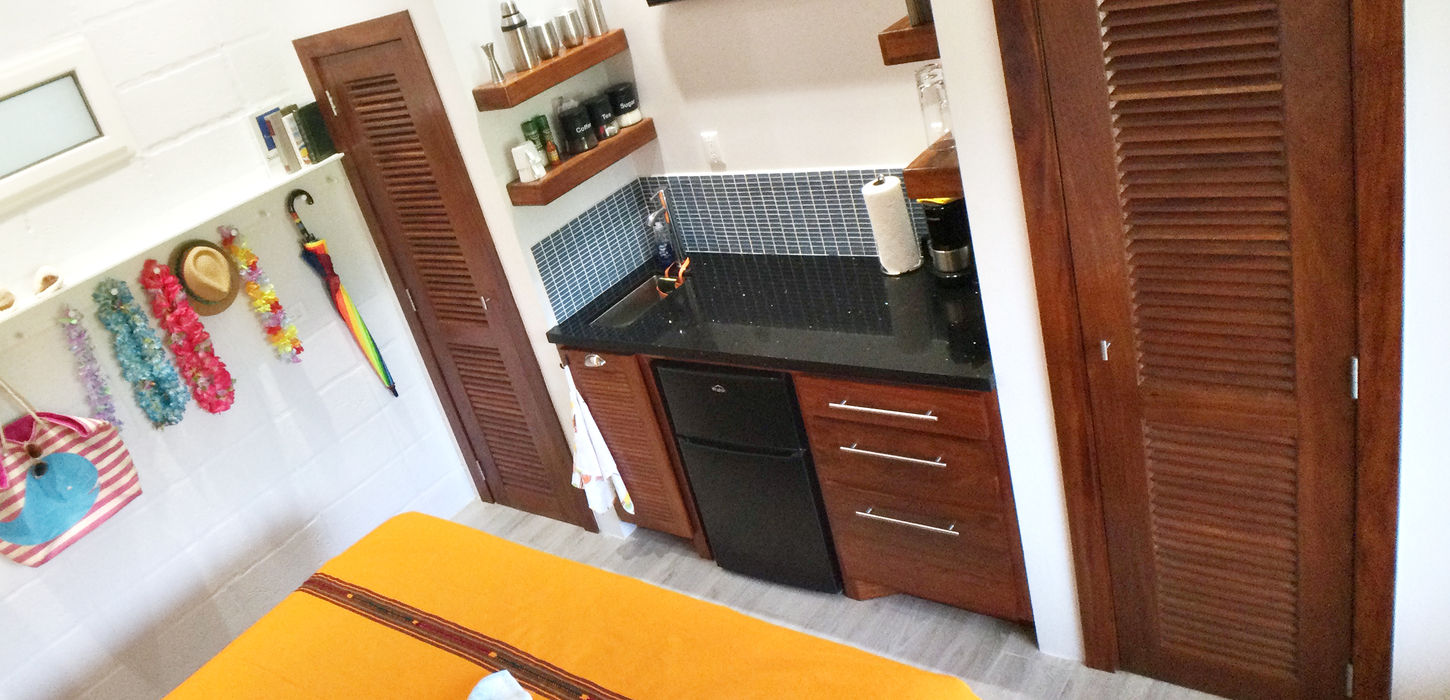 The Tiki Toucan Tropical Suite + Pool is located down a quiet, sandy cul-de-sac just off the main road, one mile north of the air strip and three miles north of Placencia village with its famously long and skinny sidewalk, picturesque shops, restaurants and bars. Seine Bight village is a mile to the north and has a large, modern grocery store and great street food.